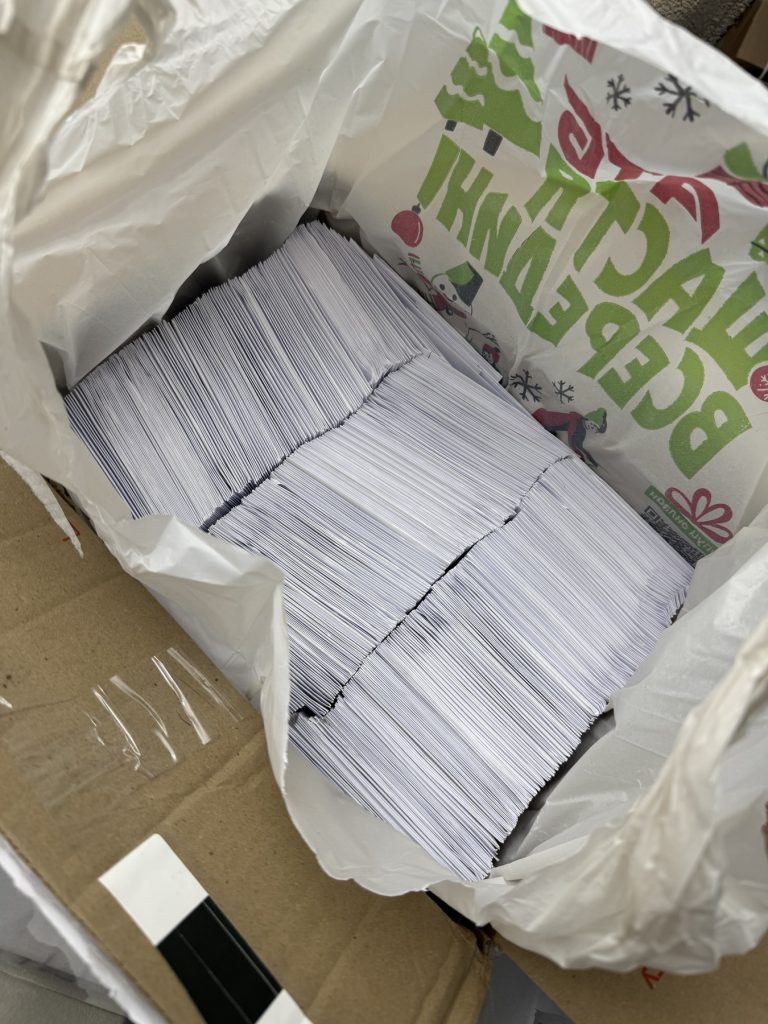 Two large batches of cards were mailed at the end of January and in mid‑February.